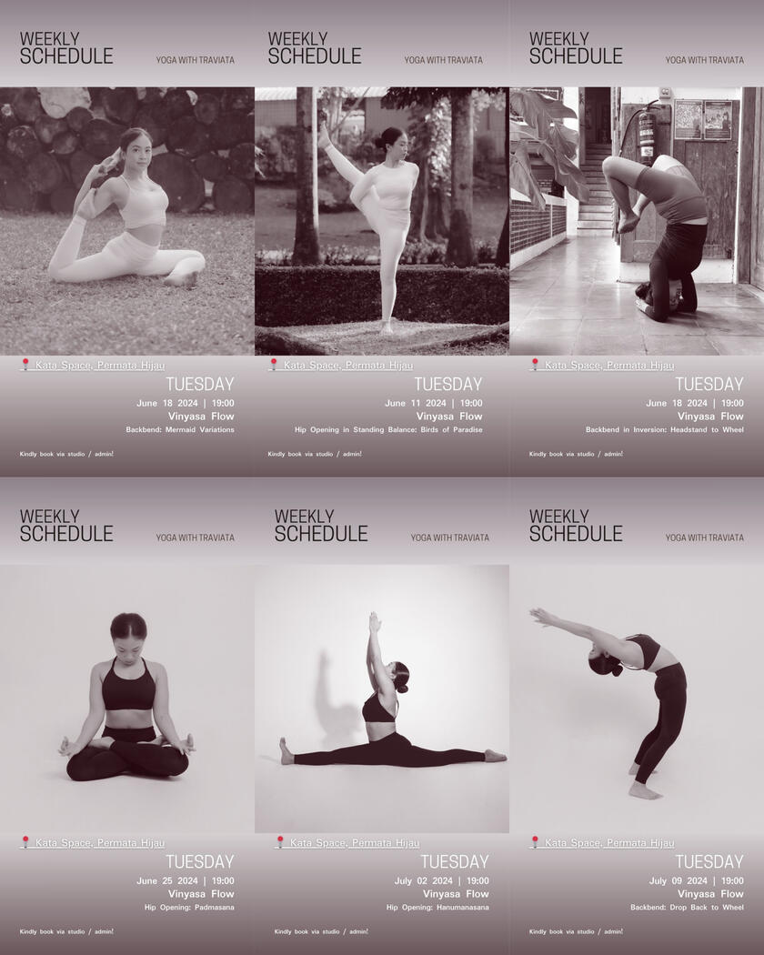 Meet Traviata, a Jakarta-based 200-hour Registered Yoga Teacher (RYT 200) with over 500 hours of teaching experience, specializing in Vinyasa Yoga.